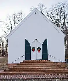 In 1881, John's last surviving son, Dr. Cary Charles Cocke, along with William Cocke and Charles E. Cosby, purchased land nearby in Bremo Bluff to relocate a chapel which John Hartwell Cocke had built for his slaves on the plantation.[19] Consecrated as part of an Episcopal Church, the Bremo Slave Chapel was listed on the Virginia Landmarks Register in December 1979 and the National Register of Historic Places in March 1980.[20] Cocke's plantation was declared a National Historic Landmark as Bremo Historic District in November 1971.[21] He also designed Glen Burnie near Palmyra, Virginia and it was listed on the National Register of Historic Places in 2000.[22]