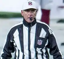 John J. Hussey (born c. 1964) is an American football official in the National Football League (NFL). Hussey was hired as a Line Judge in the 2002 NFL season. Hussey was promoted to the Referee position for the start of the 2015 NFL season following the retirement of Bill Leavy.[2][3] Hussey wears uniform number 35.