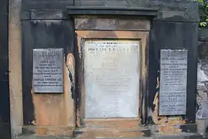 Lee died in his lodgings at New College at the University of Edinburgh on 2 May 1859.[4] He is buried in the south-west section of St Cuthberts Churchyard in Edinburgh, next to the Balfour Paul monument.