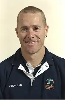 He participated in the demonstration wheelchair 1500 m event at the 2000 Sydney Olympics, but crashed 1,150 metres (3,770 ft) into the race.[11] He competed as a T54 athlete at that year's Paralympics, where he was part of the Australian team in the 4x400 m relay, reached the semi-final of the 1500 m event, was disqualified in the semi-final of the 5,000 m event after a crash for "obstruction of the track", came ninth in the 10,000 m event, and was the best-placed Australian man in the marathon in his classification, finishing twelfth.[21][22][23][24][25]