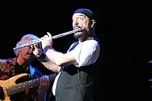 Anderson possessed a large overcoat, which his father had given to him with the words "You'd better take this. It's going to be a cold winter."[32] This overcoat, with flute, became part of his early stage image. Around this time Anderson had purchased a flute, after becoming frustrated with his inability to play guitar as well as Abrahams or Cream guitarist Eric Clapton. Their managers had wanted him to remain a rhythm guitarist, with Abrahams as the front man,[33] and Anderson said later: