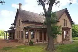 The Grill family sold the house and surrounding farmland to the city of Eden Prairie in 1976 for parkland. The house was listed on the National Register of Historic Places in 1982. The house itself has elements of the Greek Revival style, in the wide trim on the gable end, and elements of the Italianate style with the use of brick and the segmental arches over the windows. It has a gable front with a wing on the west side, along with an L-shaped front porch. The main floor contains a parlor, a bedroom, a bathroom, the living room, and the kitchen. The second floor contains four bedrooms. In addition to the main house, there are four wooden outbuildings and a milk house on the property.[2]