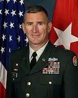 In 2008 Walsh was appointed Adjutant General and received a state promotion to brigadier general.[26] He resigned in 2012 to run for Lieutenant Governor, and continued to serve as a traditional Army Guardsman (one weekend drill per month, two weeks of annual training each year).[27] He was appointed by his successor to serve as the Montana National Guard's land component commander, and he served in this position until retiring from the National Guard in December 2012.[28]