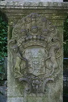 - ↑ For Grisons envoy Giovanni Battista de Salis, the elder (1521-1597), of the Casa Alta, Soglio, invested by Pope Pius V, 11 April 1571, perpetuating an earlier investiture of 1568.