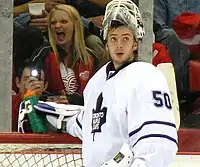 Jonas Gustavsson (Swedish pronunciation: [ˈjûːnas ˈɡɵ̂sːtavˌsɔn]; born 24 October 1984), also known by his nickname the Monster, is a Swedish former professional ice hockey goaltender.[1] Gustavsson played for the Toronto Maple Leafs, Detroit Red Wings, Boston Bruins and Edmonton Oilers during his National Hockey League (NHL) career.
