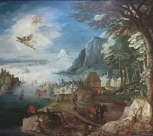 Joos de Momper the Younger or Joost de Momper the Younger[2] (1564 – February 5, 1635)[1] was a Flemish landscape painter active in Antwerp between the late 16th century and the early 17th century. Brueghel's influence is clearly evident in many of de Momper's paintings. His work is situated at the transition from late 16th-century Mannerism to the greater realism in landscape painting that developed in the early 17th century. He achieved considerable success during his lifetime.[3]