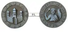 Sketch of a lead seal depicting the city of Capua (obverse) and Prince Jordan I (reverse).