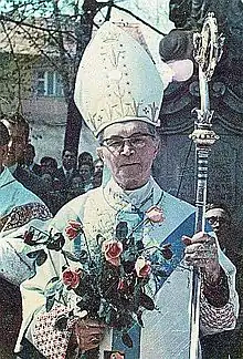 His solemn enthronement in his episcopal see came as a relief to the faithful since the see had been vacant since 1940. The Nazis had opposed a particular prelate nominated for the position leading to Pope Pius XII leaving the see vacant; the Nazis defeat in 1945 allowed for Hlouch to be appointed as a bishop.[2] His constant criticisms and opposition to the communist regime in the then-Czechoslovakia prompted his exile from the diocese. This was exacerbated when the authorities began monitoring all his activities after a 19 June 1949 sermon where he criticized the nation's direction under the regime. He returned to his diocese on 9 June 1968 on the occasion of the Prague Spring.[1] Hlouch had even been placed under house arrest in 1950 and in 1952 was arrested and then exiled from his diocese without a court trial. He left for several cities during this time first in Liberec and then in Mladá Vožice.[2][1][3]