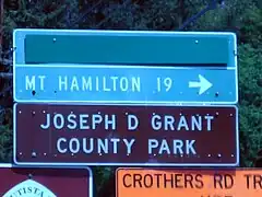 - ↑ "Joseph D. Grant County Park. Parks and Recreation". County of Santa Clara. June 12, 2014. Retrieved 2014-09-06.