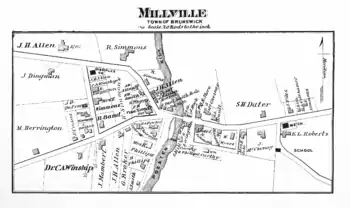 - b. ^ Eagle Mills is a hamlet (a small, unincorporated settlement) in the Town of Brunswick. It was previously known as Milltown and later Millville; both of these names are now defunct, though "Milltown" was hardly used to begin with.[4]