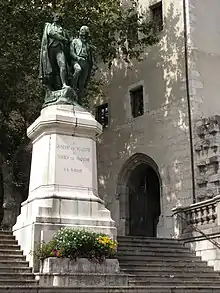 Maistre was born in 1753 at Chambéry, Duchy of Savoy, at that time part of the Kingdom of Piedmont-Sardinia which was ruled by the House of Savoy.[9] His family was of French and Italian origin.[10] His grandfather André (Andrea) Maistre, whose parents Francesco and Margarita Maistre (née Dalmassi) originated in the County of Nice,[11] had been a draper and councilman in Nice (then under the rule of the House of Savoy) and his father François-Xavier, who moved to Chambéry in 1740, became a magistrate and senator, eventually receiving the title of count from the King of Piedmont-Sardinia. His mother's family, whose surname was Desmotz, were from Rumilly.[12] He was the eldest of ten surviving children and godfather to his younger brother, Xavier, who would become a major general and a popular writer of fiction.[13][14]