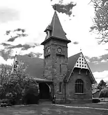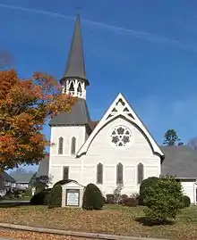 He designed two churches in Norwood, New Jersey in the Gothic revival style: the Alpine Community Church (1867) and the Church of the Holy Communion (1886-88).[5]: 27 He used Stick style or Carpenter Gothic style for the Church in the Adirondacks in Racquette Lake, New York; the First Presbyterian Church of Oyster Bay (1873) in Oyster Bay, New York; and the Plantsville Congregational Church (1866) in Southington, Connecticut.[37][38][5]: 28 St. William's Catholic Church (1890) in Long Lake, New York was designed by Cady in the shingle style.[39] This one-story building has a two-story round tower with a cone-shaped roof.[39] On the interior, the entire ceiling is hand-stenciled.[39]