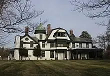 In 1876, Cady designed Cliffside, a stone mansion in Palisades, New York.[26] This Dutch Colonial Revival style house is also known as the H. E. Lawrence Estate.[53] Another country house with the similar use of a gambrel roof is Willelyn, built in 1883–1884 for Edward A. and Mary Wickes in Balmville, New York. Designed in the Shingle Style, it uses colonial motifs. The house was later owned by Senator Thomas Desmond and Alice Curtis Desmond, who donated it to Mount Saint Mary College as the Desmond Center upon her death.