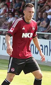 In July 2013, Drmić joined Bundesliga club 1. FC Nürnberg on a four-year contract.[10] On 18 August, he scored his first Bundesliga goal in a 2–2 draw against Hertha BSC.[11] He finished his first season with 17 league goals, the third most by any player in the league, behind Borussia Dortmund's Robert Lewandowski and Bayern Munich's Mario Mandžukić.[12] However, his team was relegated to the 2. Bundesliga.[13]