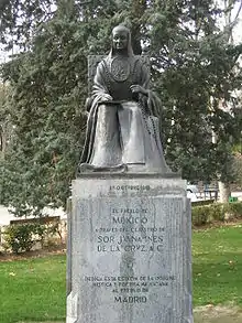 Juana de Asuaje y Ramírez de Santillana, better known as Sor Juana Inés de la Cruz[lower-alpha 1] OSH (12 November 1648 – 17 April 1695),[1] was a colonial Mexican writer, philosopher, composer and poet of the Baroque period, as well as a Hieronymite nun, nicknamed "The Tenth Muse" and "The Phoenix of America" by her contemporary critics.[1] As a Spanish-criolla from the New Spain, she was among the main American-born contributors to the Spanish Golden Age, alongside Juan Ruiz de Alarcón and Garcilaso de la Vega "el Inca", and is presently considered one of the most important female authors in Spanish language literature and the literature of Mexico.