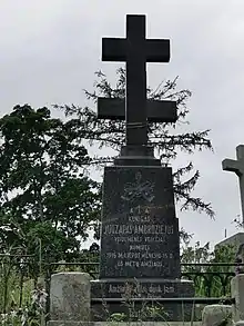 In 1905, Ambraziejus established and edited the illustrated magazine Lietuvos bitininkas (Lithuanian Beekeeper). After 12 issues, the magazine was reorganized into a Catholic journal for farmers Šviesa (light) with a weekly supplement Šviesos laiškelis (Newspaper of Šviesa).[4] The publication was supported by donations from Lithuanian Americans.[2] Though the publications were intended for former, Ambraziejus published many articles on the issues of the Lithuanian language in the Diocese of Vilnius (it became the official publication of the Union for the Return of the Lithuanian Language Rights in Lithuanian Churches in 1907).[2] The magazine also raised the idea of purchasing Verkiai Manor (priced at 800,000 rubles) and turning into a campus for various Lithuanian agricultural and craft schools. However, this idea did not become popular and readership of Šviesa continued to decline.[1] It was discontinued after 56 issues in 1908.[4] Feeling misunderstood and disappointed with the Lithuanian public, Ambraziejus retired from public life.[1] He was stubborn and abrasive which made him unpopular.[9] With the funds raised for the Verkiai Manor (about 50,000 rubles) he purchased a house in Užupis district of Vilnius and established a shelter for the city's poor. He died in obscurity on 27 June 1915.[1]