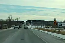 In a resolution passed on May 10, 1967, it was approved to extend K-57 northward over the Milford Dam and back to US-77. At this time, K-244 Spur was approved to be built.[11] In May 1968, work began to build the extension of K-57 over the dam.[12] The project was completed by 1969.[13] In July 1970, the SHC announced that flashing warning beacons will be added at the junction of K-57, K-244 and US-77. This was due to numerous accidents at the site including six being killed in one month. In addition to the flashing lights, the speed limit was lowered on K-57 and US-77 leading up to the intersection.[14]
