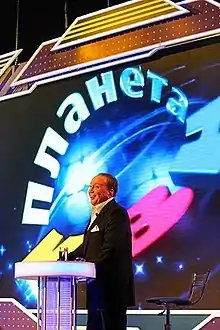 KVN (Russian: КВН, an abbreviation of Клуб весёлых и находчивых, Klub Vesyólykh i Nakhódchivykh or Ka-Ve-En, "Club of the Funny and Inventive [people]") is a Russian and formerly Soviet comedy television show and international competition in which teams—usually composed of college students—compete by giving humorous answers and show prepared sketches. The show originated in the Soviet Union and is based on the earlier program An Evening of Funny Questions (Russian: Вечер весёлых вопросов, romanized: Vecher vesyolykh voprosov). The program was first aired on the First Soviet Channel on 8 November 1961.[1]