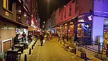 The market area is mostly closed to traffic and contains a wide variety of fast food restaurants serving toasted sandwiches, hamburgers and döner. There are also traditional Turkish restaurants and patisseries, bridge schools, wine houses, bars with jazz, folk and rock music, as well as working class tea and backgammon houses.