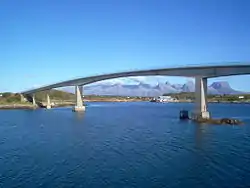 The Kalvøyrevet Bridge (Norwegian: Kalvøyrevet bru) is a cantilever bridge in the municipality of Herøy in Nordland county, Norway. The concrete bridge is 298 metres (978 ft) long, and the main span is 95 metres (312 ft). The bridge connects the small islands of Kalvøya and Hestøya and it was built as a part of Norwegian County Road 166 which connects the larger islands of Indre Øksningan and Ytre Øksningan with the rest of Herøy Municipality.[1]