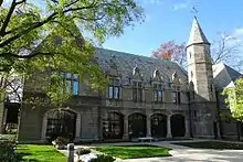 Another John Kean, son of John Kean II and Lucinetta Halsted Kean ("Lucy Kean"), inherited the estate after their deaths. John Kean served in the United States House of Representatives from 1883 to 1885, and again from 1887 to 1889, and in the United States Senate from 1899 to 1911. Senator Kean lived at Liberty Hall when not in Washington, D.C., and held annual New Year's receptions for his political supporters at the estate. After the death of Senator John Kean the house passed to his nephew, Captain John Kean, a National Guard cavalryman and president of the National State Bank, the Elizabethtown Water Company, and the Elizabethtown Consolidated Gas Company. Captain John Kean was the son of Katharine Winthrop Kean and United States Senator Hamilton Fish Kean whose library was housed at Kean Hall, a building constructed for that specific purpose in 1912. A frequent political meeting place in the first years of its life, Kean Hall now houses the undergraduate admissions office and administrative offices including the Presidential Suite and the conference room for the Kean University Board of Trustees.[15] Captain John Kean's wife, Mary Alice Barney Kean, a historian and preservationist, was the last resident of Liberty Hall and was responsible for much of its preservation.[16]