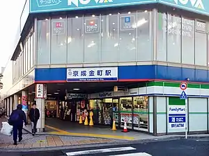 Keisei Kanamachi Station (京成金町駅, Keisei Kanamachi-eki) is a railway station on the Keisei Kanamachi Line in Katsushika, Tokyo, Japan, operated by the private railway operator Keisei Electric Railway. The station is located adjacent to Kanamachi Station on the Joban Line operated by JR East.