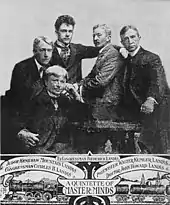 As "Kenny", as he was sometimes known, grew, he did an increasing share of the farm work, later stating, "I did my share—and it was a substantial share—in taking care of the 13 acres ... I do not remember that I particularly liked to get up at 3:30 in the morning."[5] Kenesaw began his off-farm career at age ten as a news delivery boy.[5] He left school at 15 after an unsuccessful attempt to master algebra. He worked at the local general store and then as errand boy with the Vandalia Railroad. Landis applied for a job as a brakeman, but was laughingly dismissed as too small. He then worked for the Logansport Journal, and taught himself shorthand reporting, becoming in 1883 official court reporter for the Cass County Circuit Court.[6] Landis later wrote, "I may not have been much of a judge, nor baseball official, but I do pride myself on having been a real shorthand reporter."[7] He served in that capacity until 1886.[7] In his spare time, he became a prize-winning bicycle racer and played on and managed a baseball team.[6] Offered a professional contract as a ballplayer, he turned it down, stating that he preferred to play for the love of the game.[8]