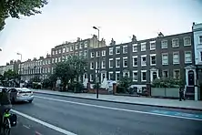 By the 1770s, the development of Kennington into its modern form was well underway. Terraces of houses were built on the east side of Kennington Road and Cleaver Square (then called Prince's Square) was laid out in 1788.[6] Michael Searles, architect and developer, built semi-detached houses along Kennington Park Road in the 1790s.