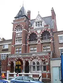 The Durning Library, at Kennington Cross, was designed in 1889 by S. Sidney R. J. Smith, architect of the Tate Gallery (as it then was; now Tate Britain), and is a fine example of the Gothic Revival style. The library was a gift to the people of Kennington from Jemina Durning Smith.