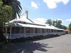 Connected to the house on the eastern elevation is the modern staff area which has a low-pitch hip roof. The extension at the rear of the house is a long rectangular building capped by a low-pitched roof. The encircling verandah employs the same decorative features as used on the older parts.[1]