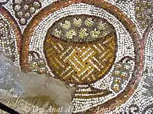 In 1983 and 1986 Joseph Patrich and Yoram Tsafrir excavated a basilica church at the site, as well as an olive press, a wine press and a burial cave nearby,[8] on behalf of the Institute of Archaeology of the Hebrew University in Jerusalem. The church is thought to have been built around the year 500 CE, and to have functioned well into the 8th century. The church complex was thought to be on the outskirts of a village. The mosaic floors of the church were defaced, reflecting iconoclastic activity, but were then repaired.[9]