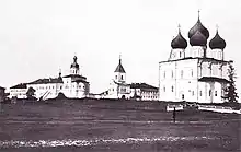 Kholmogory (then Kolmogory) was known since the 14th century and quickly established itself as one of the most important trading settlements in the North of Russia. After Arkhangelsk was founded in 1584, Kholmogory eventually declined. Since 1707, it was a posad subordinated to Arkhangelsk.[12] Still, between 1682 and 1762, Kholmogory was the seat of the Kholmogory and Vaga Eparchy (from 1732 known as Kholmogory and Archangelogorod Eparchy) which had jurisdiction basically over all Northern Russia including the Solovetsky Monastery.