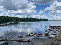 The main bays of the reservoir are: Quatre Milles bay, Blueberry bay, Berthelette bay, des Écorces bay and Cutaway bay (to the south). In addition to the Kiamika River, the reservoir is supplied by: