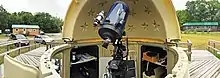 The Skyshed POD system is normally designed to house a Telescope of maximum 14" in size.[7] However, with the careful placement of the permanent equatorial pier inside the southernmost storage POD bay, the 16" plus refractor were all shifted southwards allowing the height necessary to accommodate the entire system.