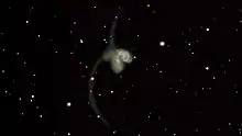 ![]() NGCs 4038 and 4039, the Antennae Galaxies, as imaged in HaOiiiRGB from the 0.4 Metre telescope within the K'chi Waasa Debaabing Dome at the Killarney Provincial Park Observatory complex | ||