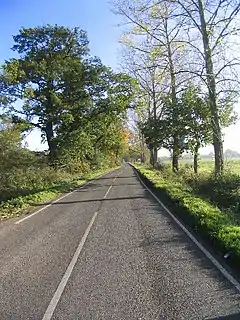 Tree-lined avenue, King Street, Essex, looking east. King Street is both the name of the road and the small hamlet nearby.
