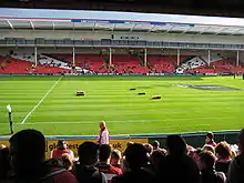 In 2017 it was announced that "The Shed" would be renamed Greene King Shed following a sponsorship deal with the brewer Greene King.[11] This deal was superseded in 2021 by a new deal with medical supplier Compeed meaning the stand became The Compeed Shed ahead of the 2021–22 season.[12] A new artificial surface was also laid ahead of the 2021–22 season.[13]