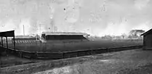 A proposal by the then Gloucester Football Club to acquire the grounds where Kingsholm Stadium is built was first put together in July 1891.[1] The purchase was made and the first match took place in October 1891.[2] A pavilion was built in 1892, initially with seating capacity for 424 spectators.[1][3] A wooden stand was added in 1923. In September 1933, a fire destroyed this stand; a larger replacement was completed before the end of the year in its place.[4] The original pavilion was demolished in 1934 and, in its place, was built the stand that is today known as The Shed.[1]