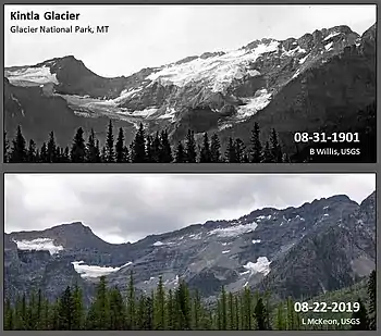 - 1 2 "Retreat of Glaciers in Glacier National Park" (PDF). United States Geological Survey. 2010. Archived from the original (pdf) on 2012-05-11. Retrieved 2012-09-23.