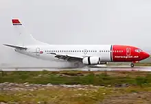 Three airlines serve the airport with scheduled flights. Scandinavian Airlines (SAS) and Norwegian Air Shuttle both operate a daily flights to Oslo, Norwegian use Boeing 737and SAS use Airbus A320-200neo.[22] Widerøe flies to various regional airports in Finnmark and Troms, and uses Kirkenes as a hub to feed regional passengers to Oslo flights. Widerøe operates its eight daily services[28] with de Havilland Canada Dash 8 aircraft.[37] Hamburg International operates charter services from Germany from May to September on behalf of Hurtigruten Group with tourist transferring to the Hurtigruten coastal voyage. There are sporadic charters of fishermen operated by Atlantic Airways.[28]