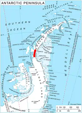 Klebelsberg Glacier (67°23′S 66°19′W / 67.383°S 66.317°W) is a glacier, 7 nautical miles (13 km) long and 2 nautical miles (4 km) wide, situated at the south side of Finsterwalder Glacier and flowing from Hemimont Plateau northwestward between Armula Peak and Smilyan Bastion on Graham Land, Antarctica, toward the head of Lallemand Fjord. With Finsterwalder Glacier and Haefeli Glacier, its mouth merges with Sharp Glacier where the latter enters the fjord. It was first surveyed from the plateau in 1946–47 by the Falkland Islands Dependencies Survey, and named by them for Raimund von Klebelsberg, an Austrian glaciologist.[1]