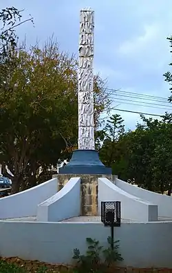 The Kolonna Eterna was the first local monument by Paul Vella Critien to be installed in a public space and officiated on 27 February 2003.[1][2] Behind the project was the San Gwann Local Council which pushed the idea of decorating public gardens with the inclusion of well established local artists' art.[1] Paul Vella Critien has received art education in Italy and had already experience as an artist career when he lived in Australia. Since its erection the monument had already caught the attention of the public because of its phallic appearance however it is intended to represent an Egyptian obelisk pointing to the open skies as a symbol to eternity.[3][4]