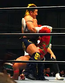 - ↑ Aagan Iisou was a stable in Dragon Gate that Shuji Kondo reformed in Pro-Wrestling Basara. Sugawara and Owashi were considered associates of the stable.