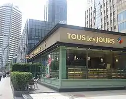 Tous Les Jours was established by the CJ Group in 1996 and has over 1300 locations in Asia and the US.[26] Tous Les Jours accounts for about one-fifth of the market share.