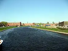 The Kronverksky Strait (Russian: Кронверкский пролив) is a narrow channel separating Petrogradsky and Zayachy islands in Saint Petersburg, Russia.[1] It forms an arc approximately 1 kilometre (0.6 mi) long, about 50 metres (160 ft) wide and 4 metres (13 ft) deep. To the south is Zayachy Island, which is dominated by the Sts. Peter and Paul Fortress, and to the north is the Kronverk on Petrogradsky Island. It is spanned by the Kronverksky Bridge to the east and the Ioannovsky Bridge to the west.