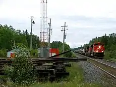 Kukatush is a rail siding and ghost town in Unorganized North Part of Sudbury District, Ontario, Canada. It is located approximately 60 kilometres (37 mi) west of Timmins (via Highway 101). The elevation is 349 metres (1,145 ft).