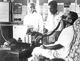 In 1924, Kuvalayananda founded the Kaivalyadhama Health and Yoga Research Center in Lonavla, Maharashtra, to provide a laboratory for his scientific study of Yoga.[9] In the anthropologist Joseph Alter's words, "what he himself had to prove was that this truth [of classical yoga] was based on natural laws and universal principles. In some sense, pure, objective science was to be deployed as the handmaiden of spirituality and orthodox philosophy so as to establish what came to be the theme of his life's work".[8] His research agenda, although covering a variety of yogic practices (which he divided into asana (postures), pranayama (breathing exercises), and other practices, namely kriyas, mudras, and bandhas), resulted in a detailed study of the physiology involved during each such practice.[10] So, for example, Kaivalyadhama measured the consumption of oxygen of yogins seated cross-legged and practising pranayama; Kuvalayananda explained that while "the westerner" saw deep breathing as useful for providing oxygen, "With us the oxygen value of pranayama is subordinate. We prize it more for its usefulness in nerve culture."[11]