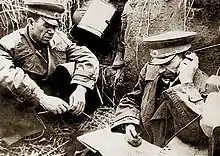 Moskalenko (left) with Alexei Yepishev at a command post (1944)