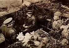 Moskalenko (left) with Marshal Ivan Konev (center) at a command post in the Carpathians (1945)