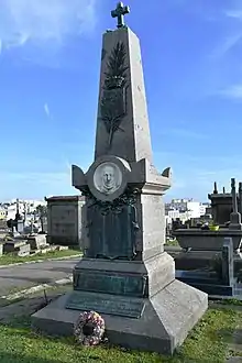 After her husband Auguste died of pneumonia in 1882,[2] Hersent-Penquer gave a commission to the prolific sculptor Frédéric-Auguste Bartholdi (famous for his Statue of Liberty in New York) for a monument dedicated to her husband and where she could be interred as well. The completed granite tomb was erected in St. Martin Cemetery in Brest.[2]